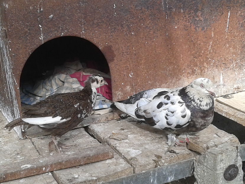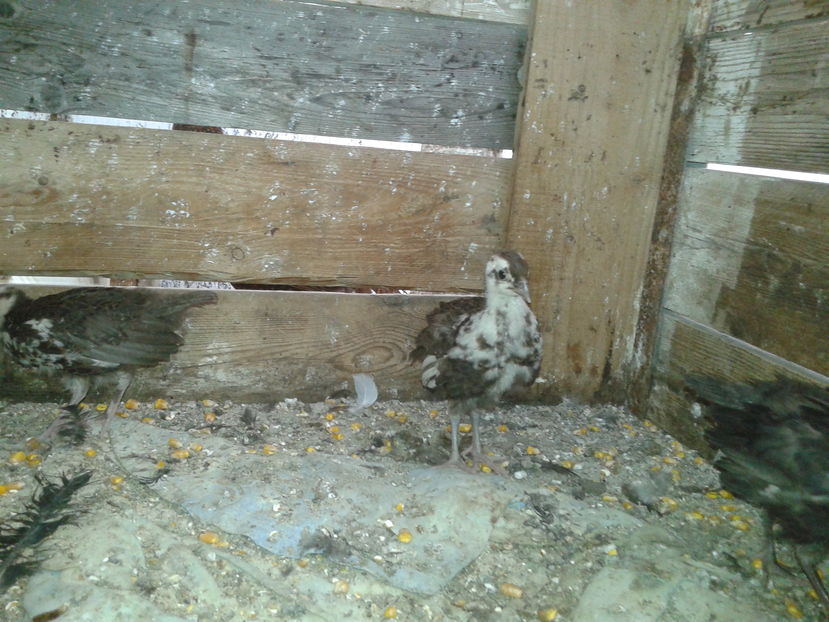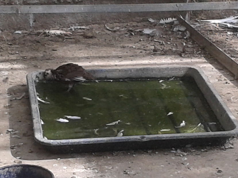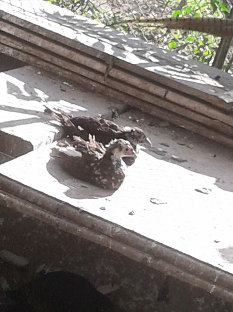 avand o rana mare pe cap , a fost separata de celelalte , impreuna cu un mascul tanar , aceasta a mai depus 7 oua , intr-un cuib de porumbel si acum le closeste
